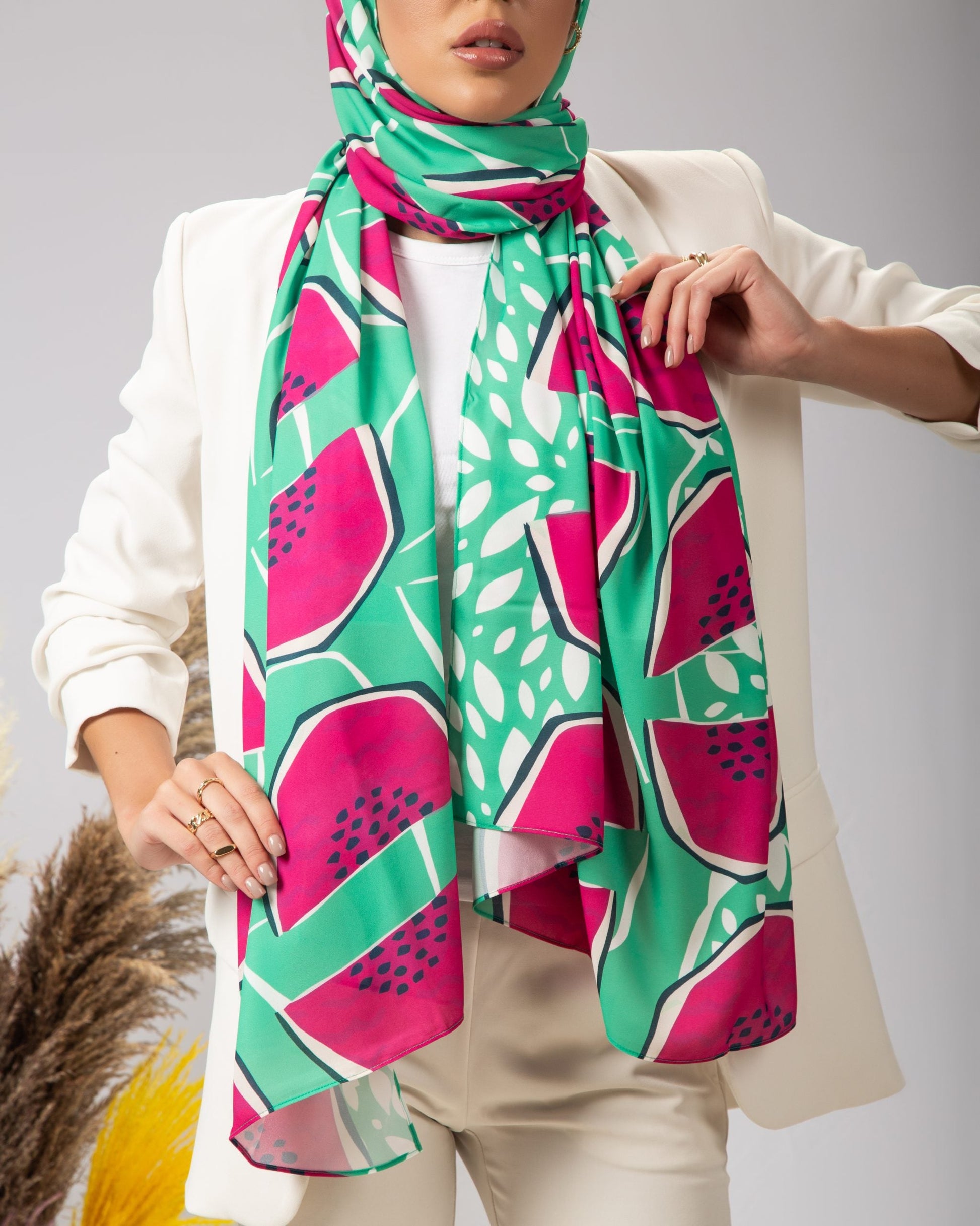 Introducing our printed chiffon collection featuring a stunning abstract design; perfect for those who want to make a bold style statement. Elevate your look with these unique and eye-catching prints offered by Pastel. Crafted with care and creativity; our printed chiffon scarves are designed to help you stand out and complete your outfit with a touch of elegance and individuality. Explore our collection and embrace the world of chic and distinctive fashion with Pastel.